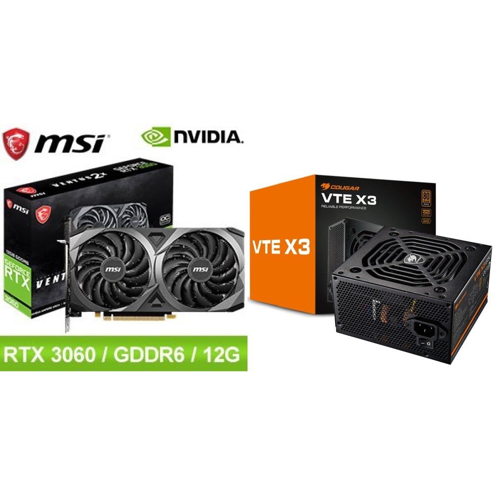 ☆期間限定★ 微星 RTX 3060 VENTUS 2X 12G OC 顯示卡+COUGAR VTE X3 650W 銅牌 電源供應器 ★送MSI 帆布購物袋