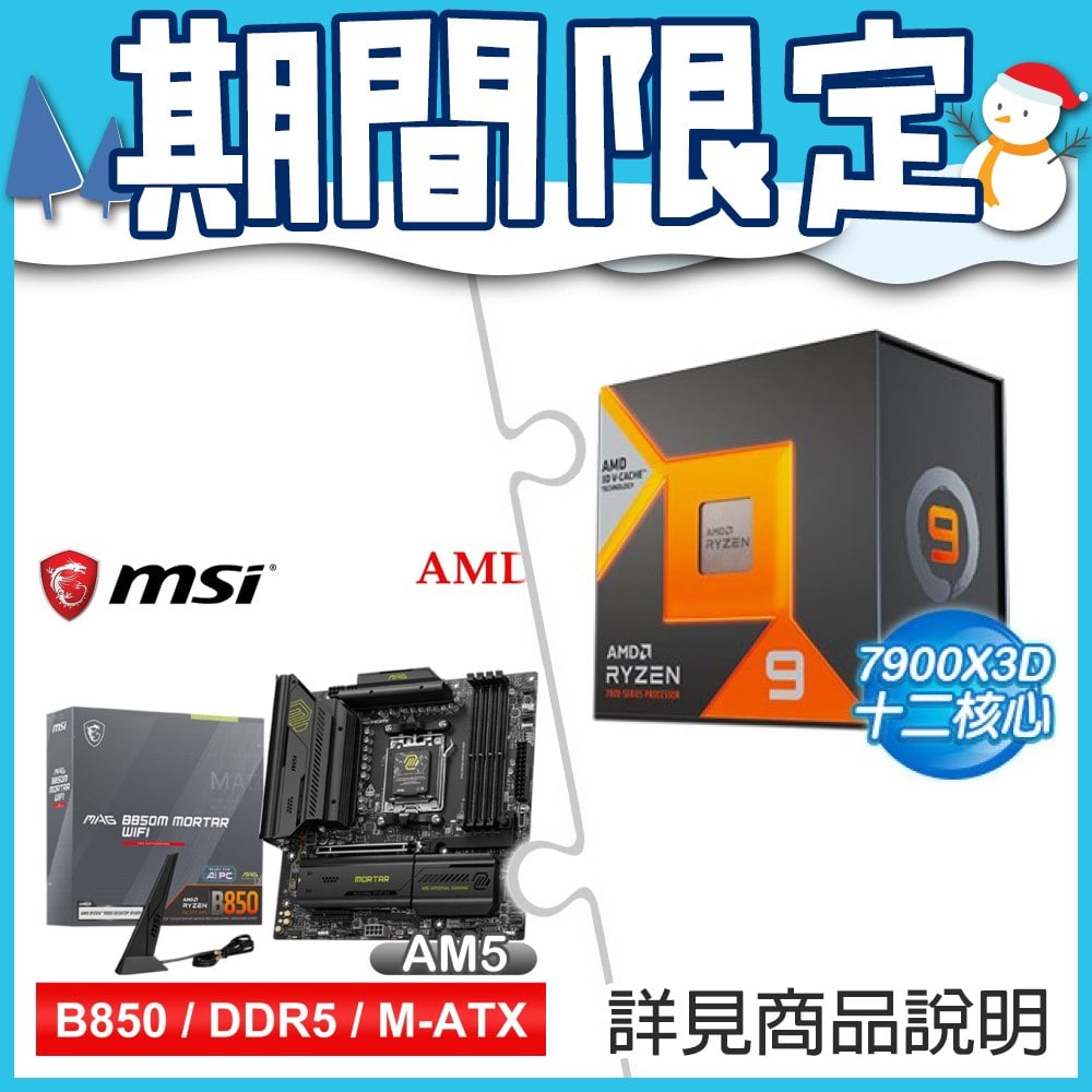 ☆期間限定★ AMD R9 7900X3D+微星 MAG B850M MORTAR WIFI M-ATX主機板 ★送酷碼 MasterLiquid 360 Atmos ARGB 白色 水冷散熱器