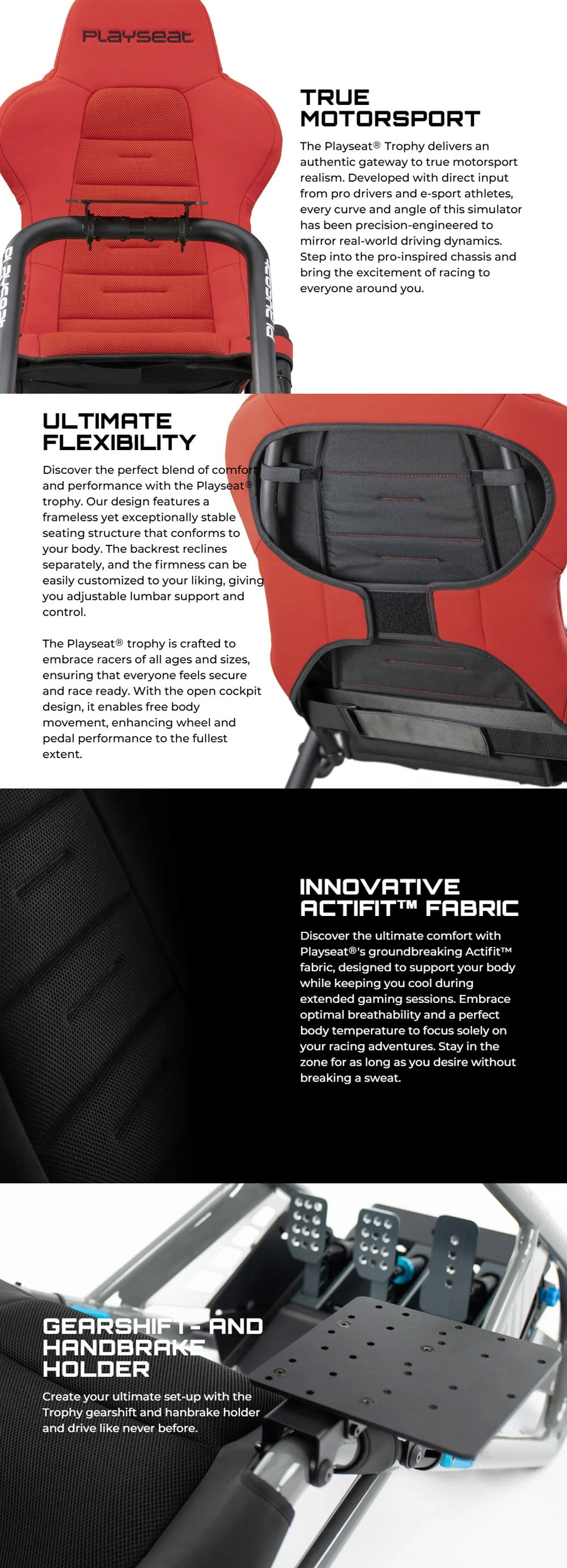 • Created with breathalbe Playseat® ActiFit™ material so you can race without overheating