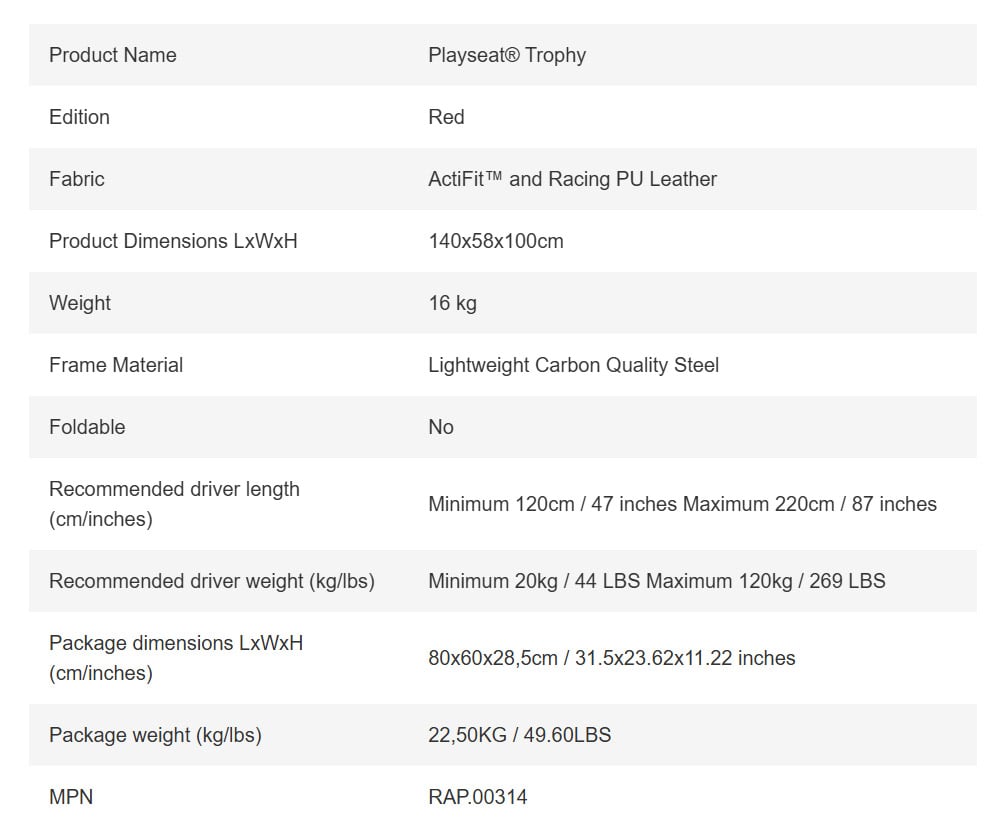 • It's fully adjustable so any size racer can find the perfect driving position