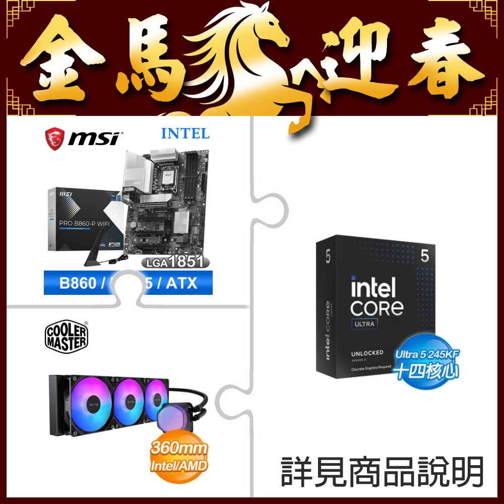 ☆超頻新戰力★ Core U5 245KF+微星 PRO B860-P WIFI 主機板 +酷碼 EliteLiquid 360 ARGB 水冷散熱器