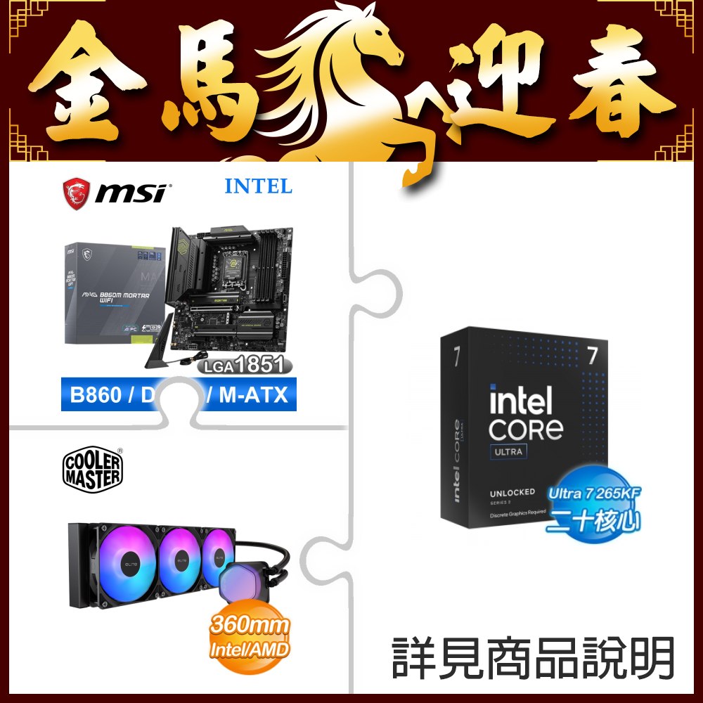 ☆超頻新戰力★ Core U7 265KF+微星 MAG B860M MORTAR WIFI 主機板 +酷碼 EliteLiquid 360 ARGB 水冷散熱器