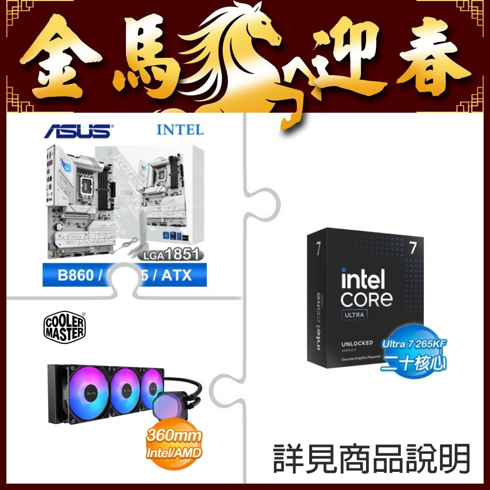 ☆超頻新戰力★ Core U7 265KF+華碩 ROG STRIX B860-A GAMING WIFI 白 主機板 +酷碼 EliteLiquid 360 ARGB 水冷散熱器