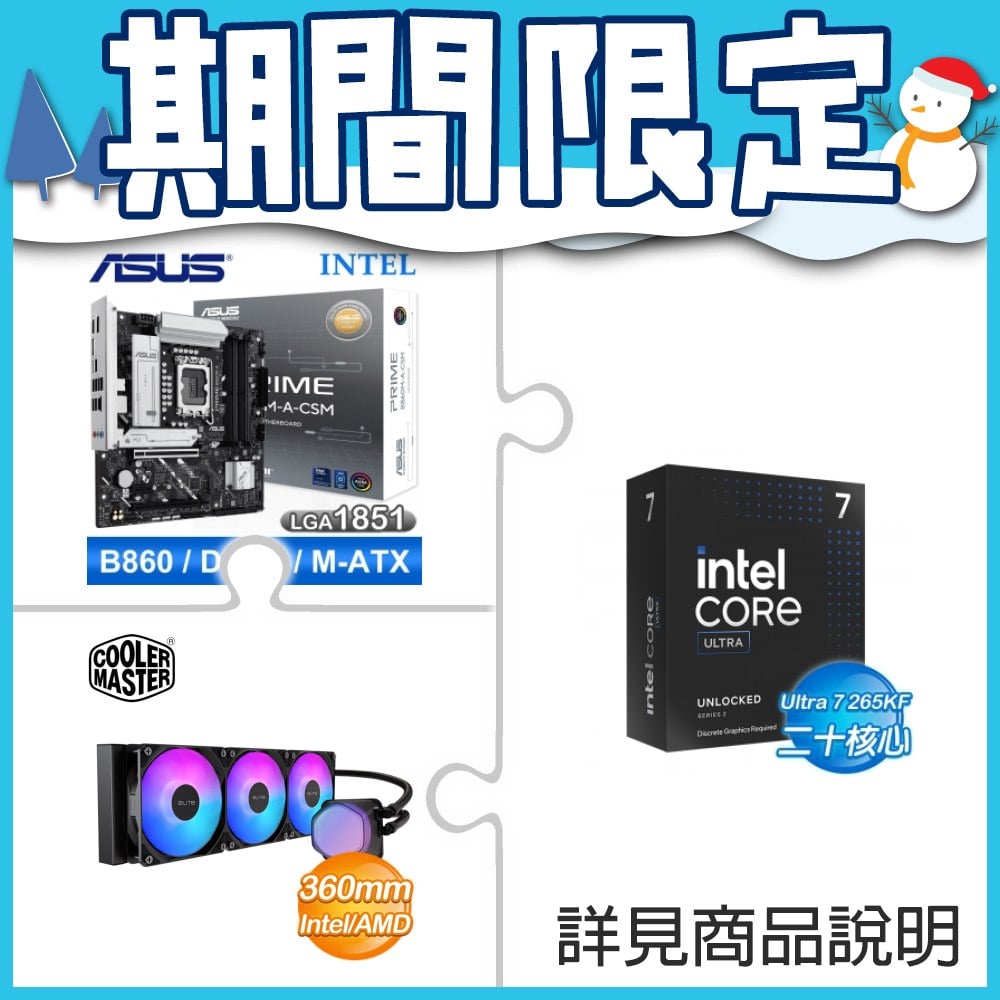 ☆超頻新戰力★ Core U7 265KF+華碩 PRIME B860M-A-CSM 主機板 +酷碼 EliteLiquid 360 ARGB 水冷散熱器