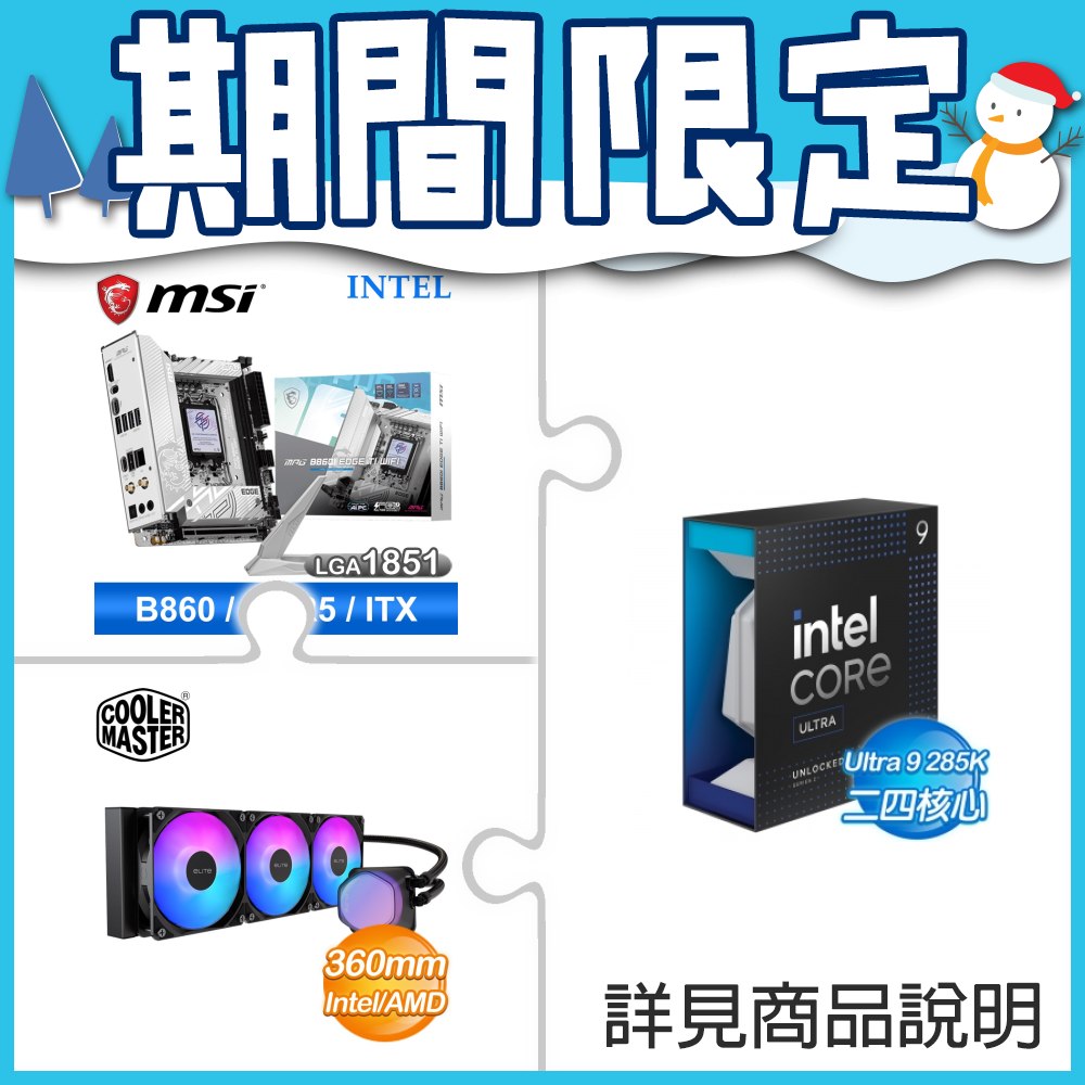 ☆超頻新戰力★ Core U9 285K+微星 MPG B860I EDGE TI WIFI LGA1851主機板(ITX/3+2年保) +酷碼 EliteLiquid 360 ARGB 水冷散熱器
