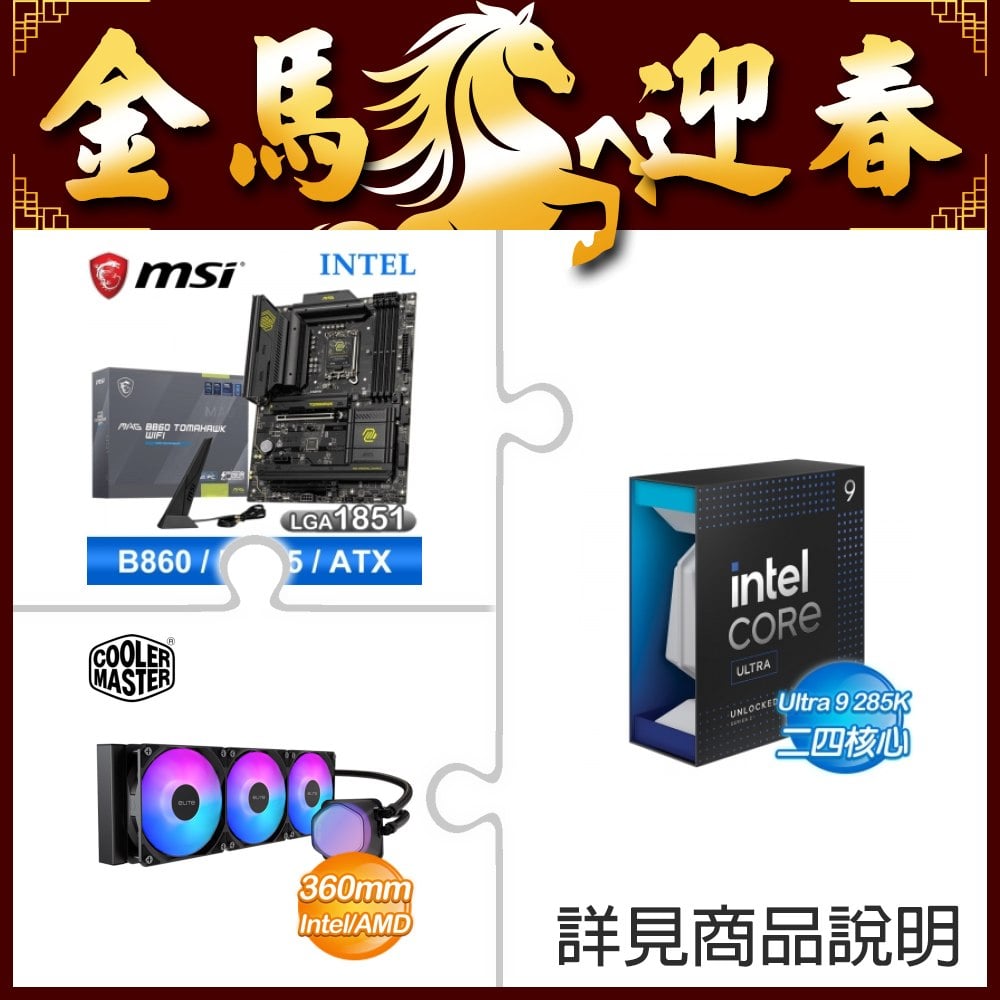☆超頻新戰力★ Core U9 285K+微星 MAG B860 TOMAHAWK WIFI 主機板 +酷碼 EliteLiquid 360 ARGB 水冷散熱器