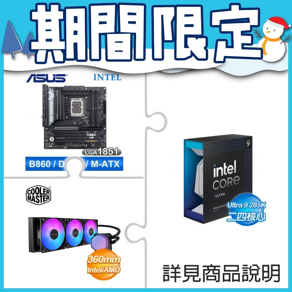 ☆超頻新戰力★ Core U9 285K+華碩 TUF GAMING B860M-PLUS WIFI 主機板 +酷碼 EliteLiquid 360 ARGB 水冷散熱器