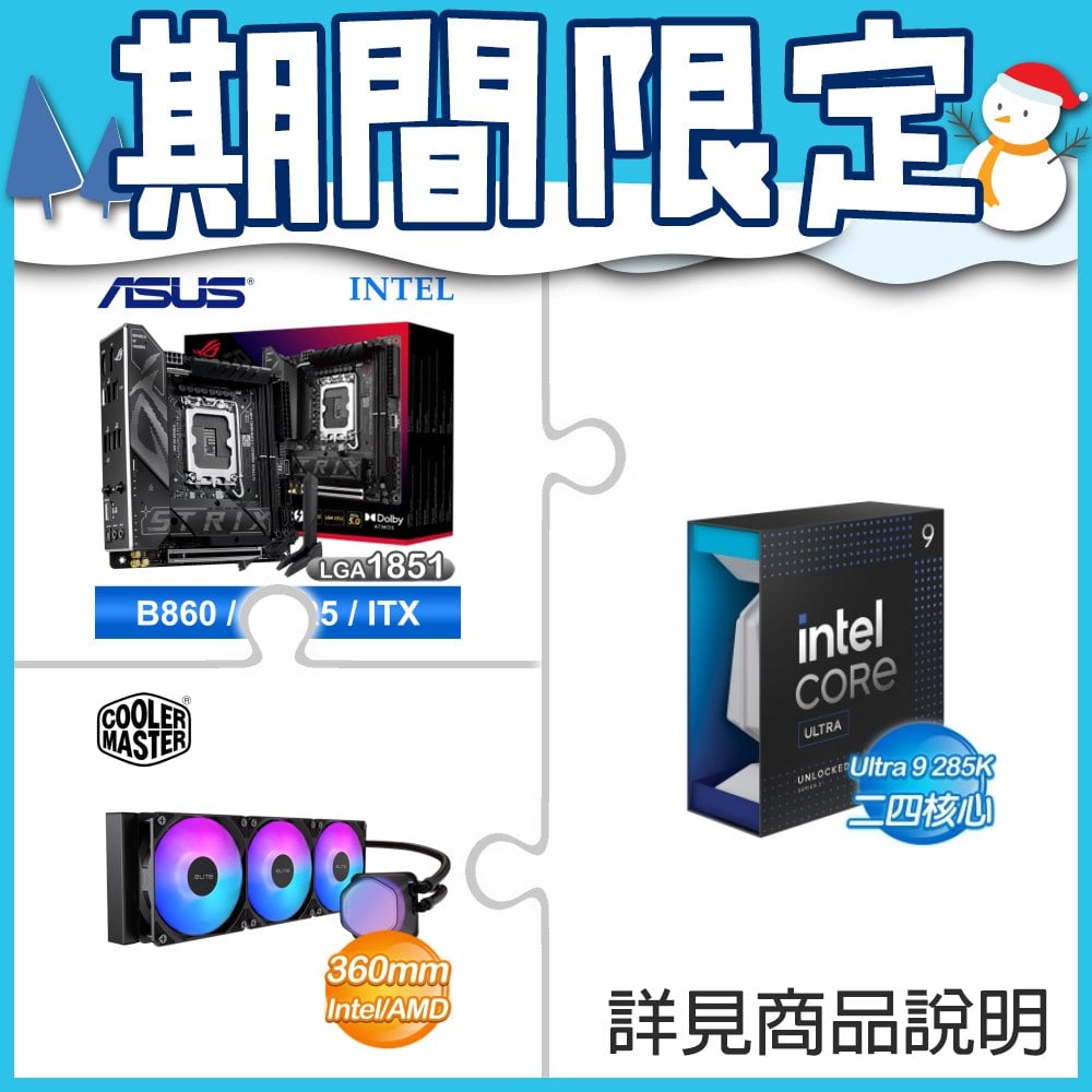 ☆超頻新戰力★ Core U9 285K+華碩 ROG STRIX B860-I GAMING WIFI 主機板 +酷碼 EliteLiquid 360 ARGB 水冷散熱器