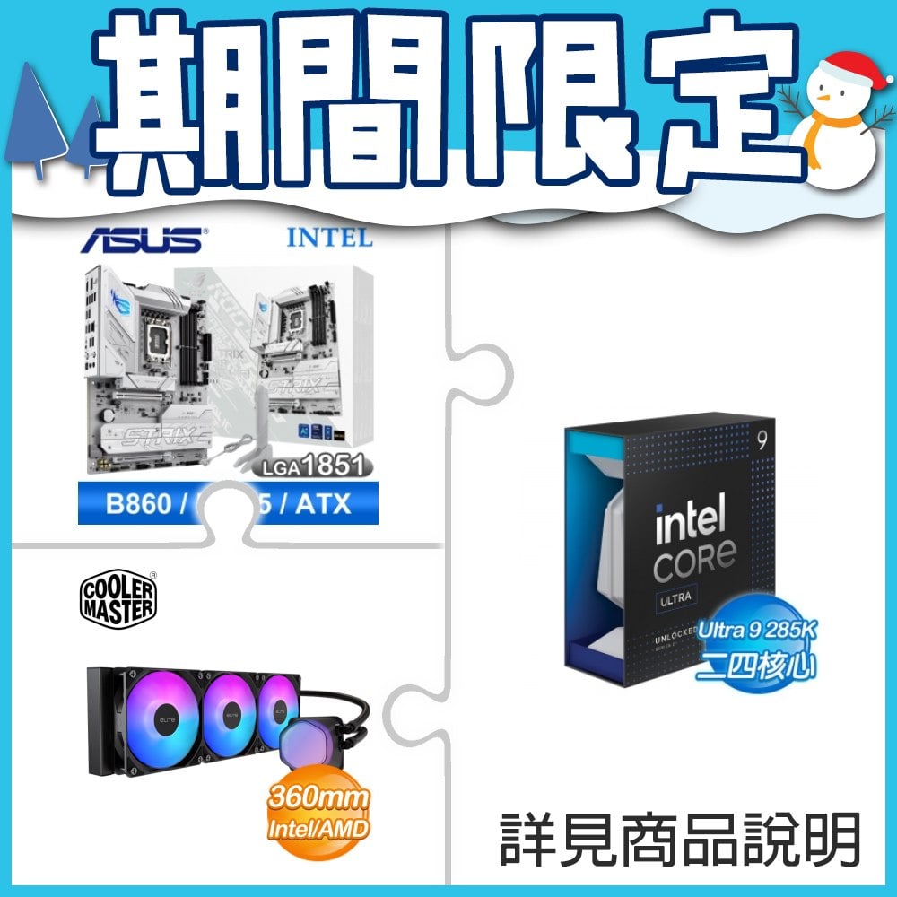 ☆超頻新戰力★ Core U9 285K+華碩 ROG STRIX B860-A GAMING WIFI 白 主機板 +酷碼 EliteLiquid 360 ARGB 水冷散熱器