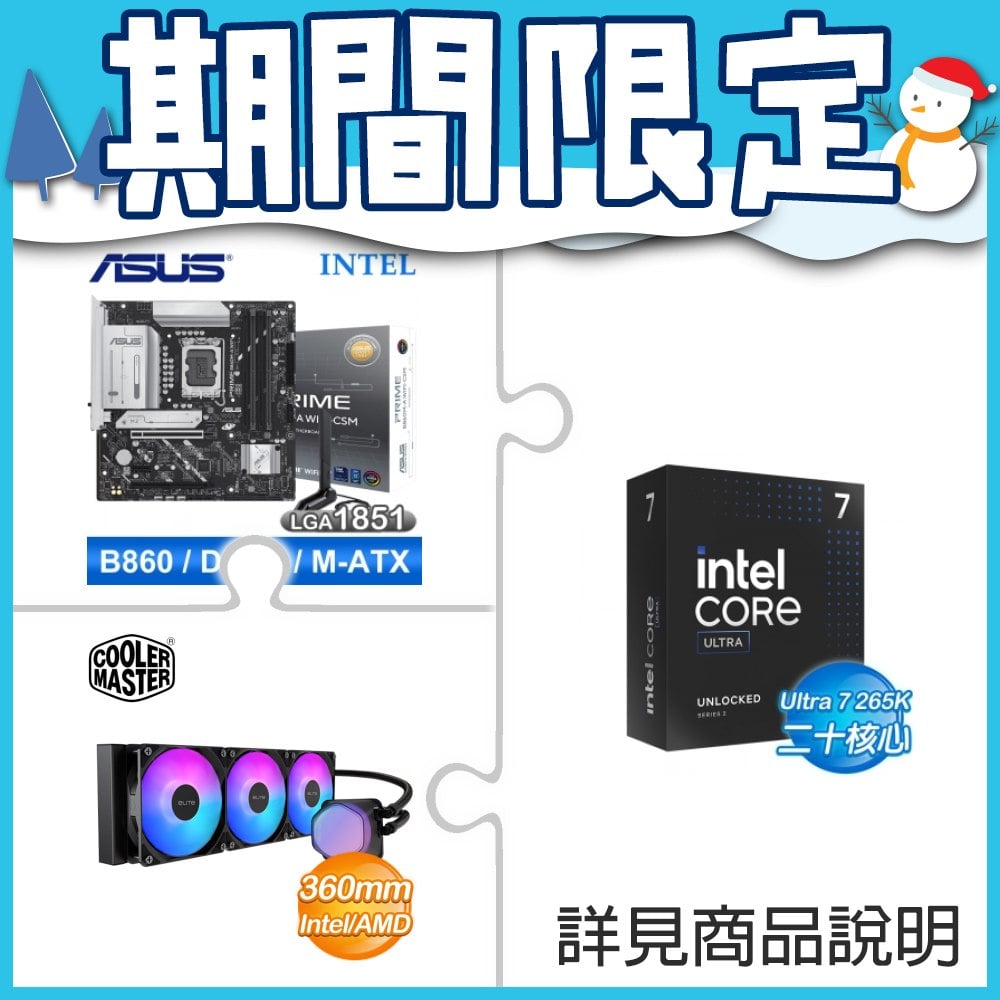 ☆超頻新戰力★ Core U7 265K+華碩 PRIME B860M-A WIFI-CSM 主機板 +酷碼 EliteLiquid 360 ARGB 水冷散熱器