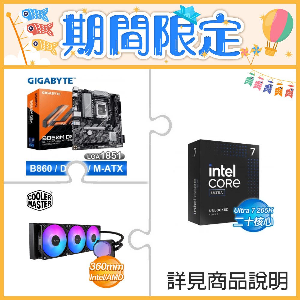 ☆超頻新戰力★ Core U7 265K+技嘉 B860M D2H 主機板 +酷碼 EliteLiquid 360 ARGB 水冷散熱器