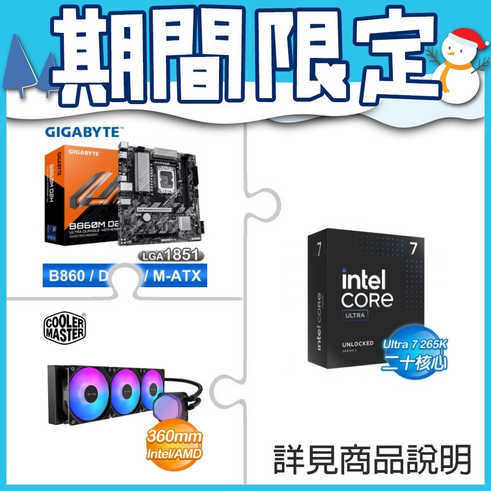☆超頻新戰力★ Core U7 265K+技嘉 B860M D2H 主機板 +酷碼 EliteLiquid 360 ARGB 水冷散熱器