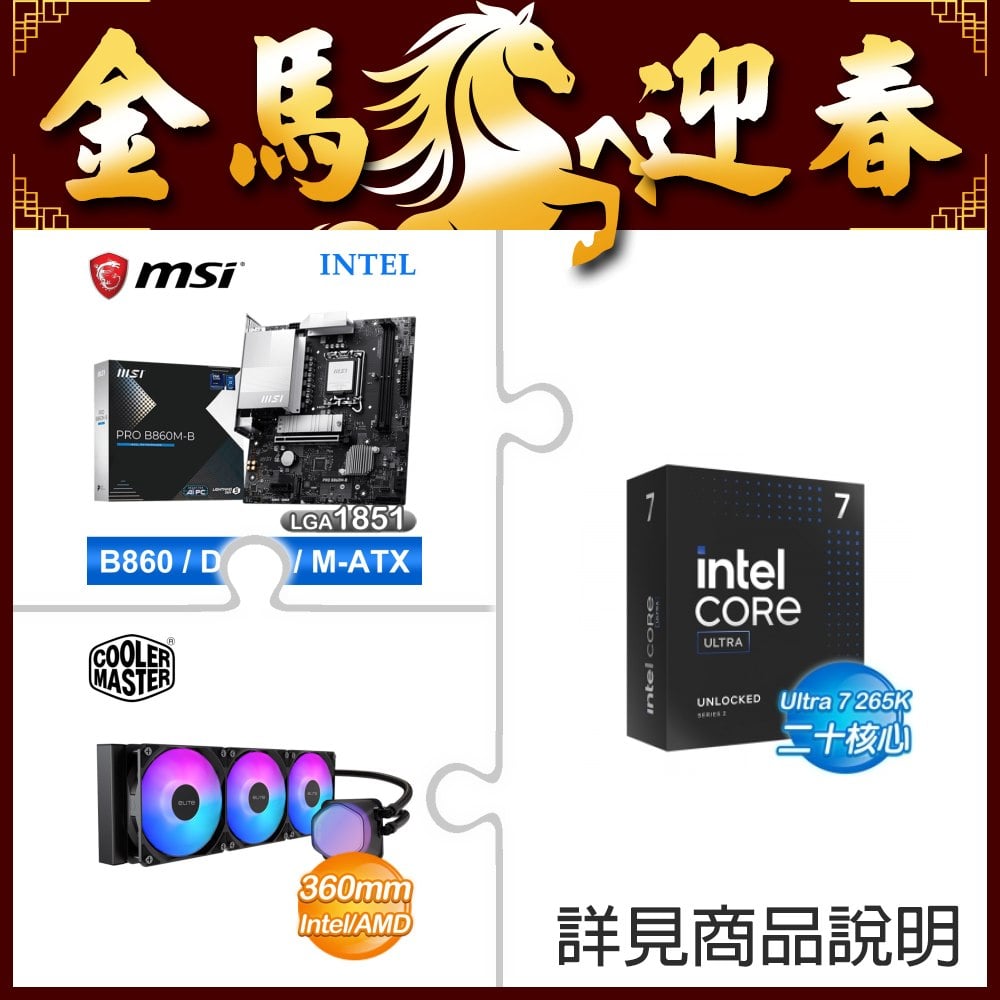 ☆超頻新戰力★ Core U7 265K+微星 PRO B860M-B 主機板 +酷碼 EliteLiquid 360 ARGB 水冷散熱器