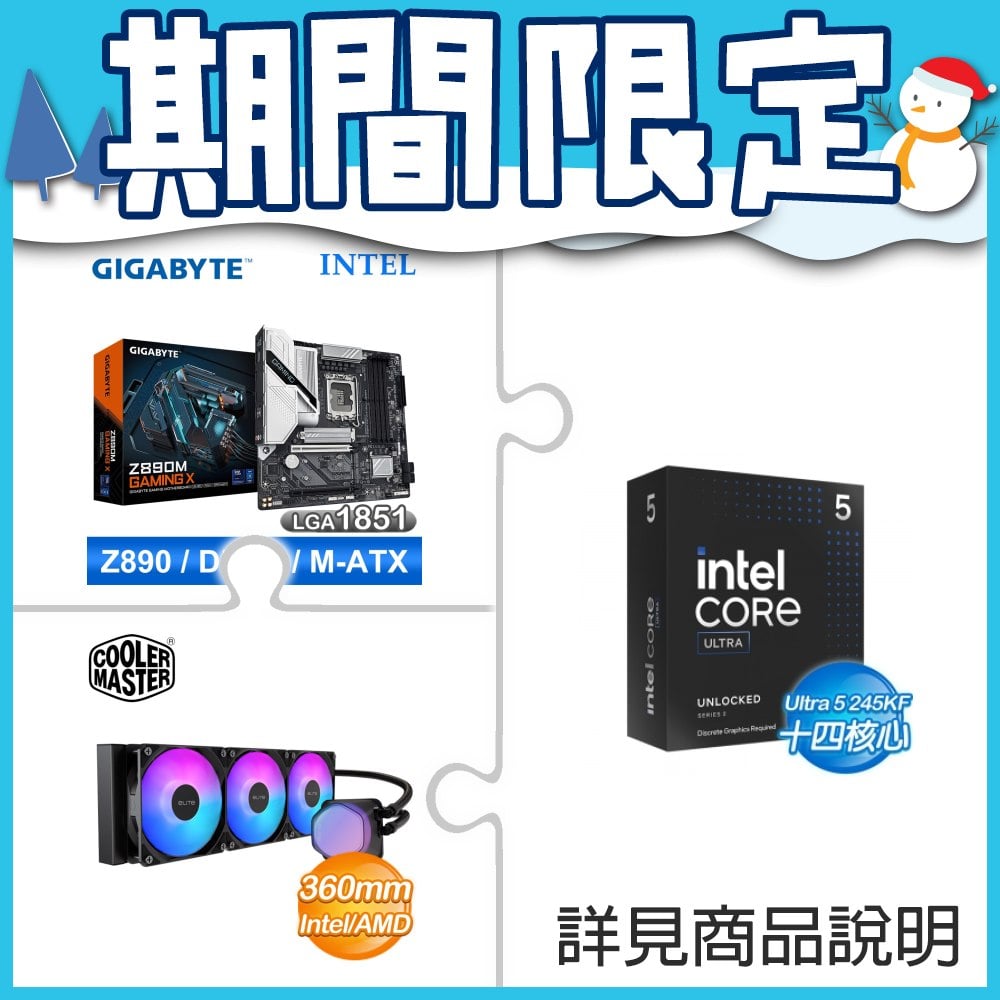 ☆超頻新戰力★ Core U5 245KF+技嘉 Z890M GAMING X 主機板 ★送酷碼 EliteLiquid 360 ARGB 水冷散熱器
