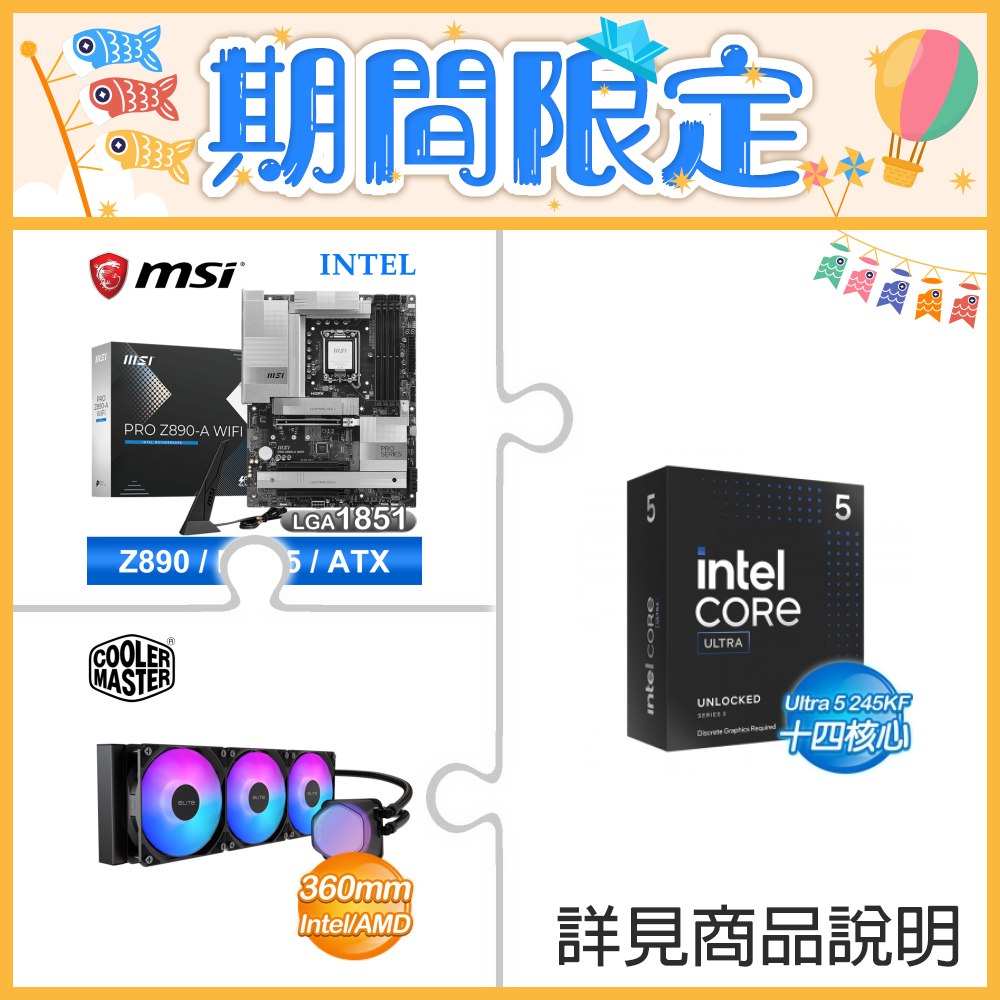 ☆超頻新戰力★ Core U5 245KF+微星 PRO Z890-A WIFI 主機板 ★送酷碼 EliteLiquid 360 ARGB 水冷散熱器