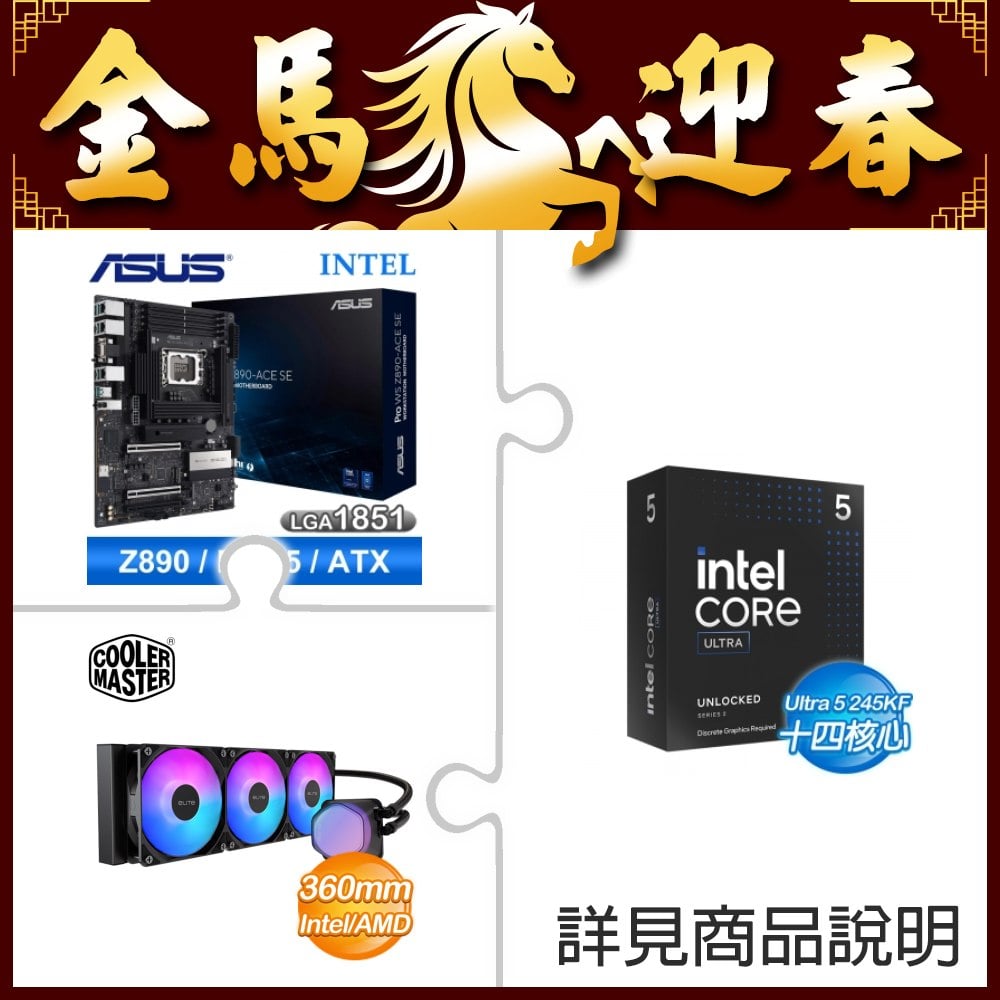 ☆超頻新戰力★ Core U5 245KF+【客訂】華碩 Pro WS Z890-ACE SE 主機板 ★送酷碼 EliteLiquid 360 ARGB 水冷散熱器