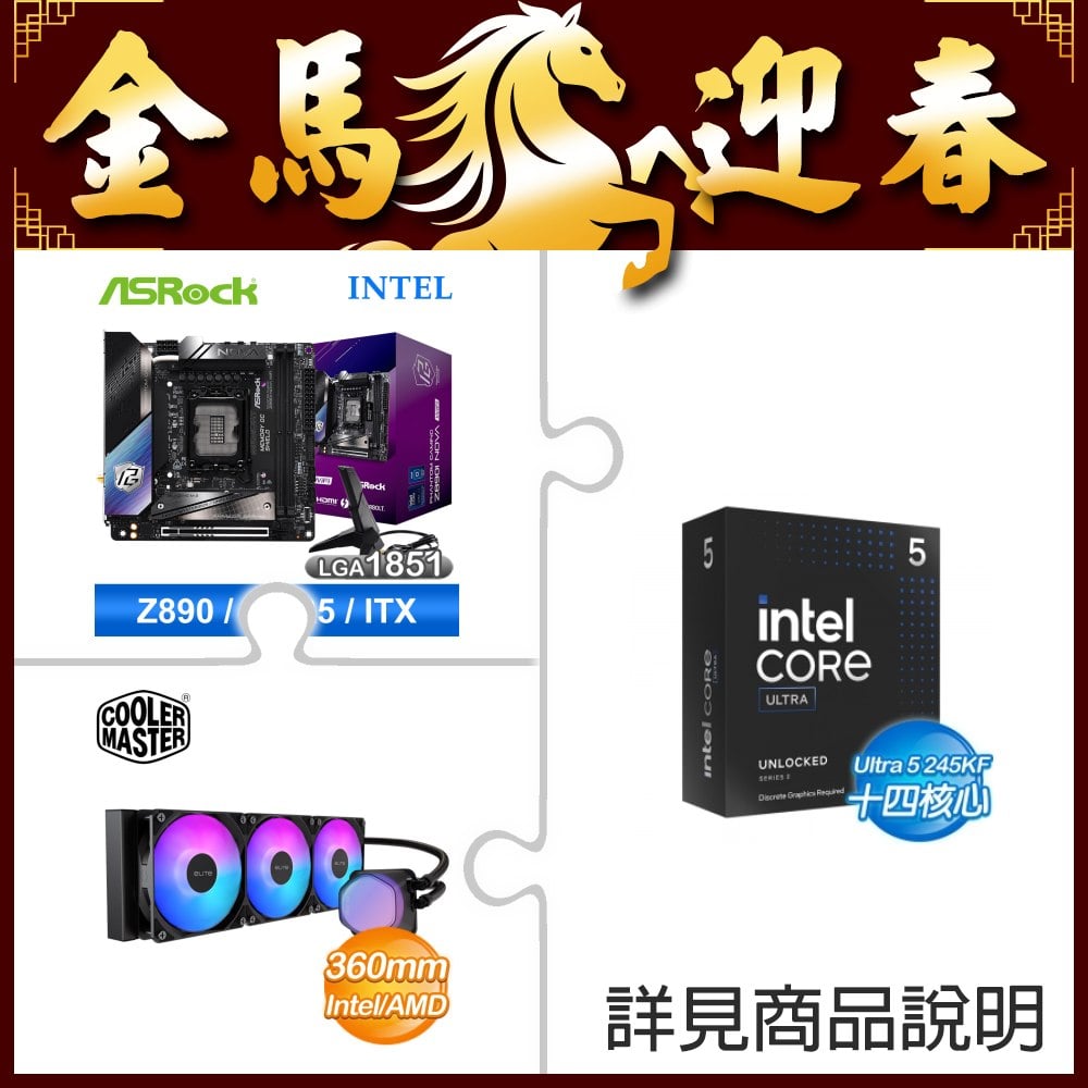 ☆超頻新戰力★ Core U5 245KF+華擎 Z890I Nova WiFi 主機板 ★送酷碼 EliteLiquid 360 ARGB 水冷散熱器