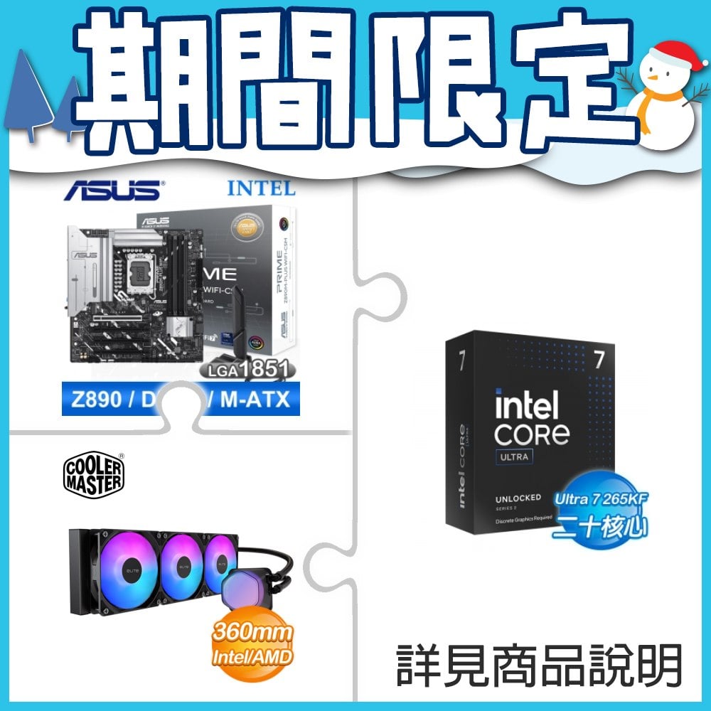 ☆超頻新戰力★ Core U7 265KF+華碩 PRIME Z890M-PLUS WIFI-CSM 主機板 ★送酷碼 EliteLiquid 360 ARGB 水冷散熱器