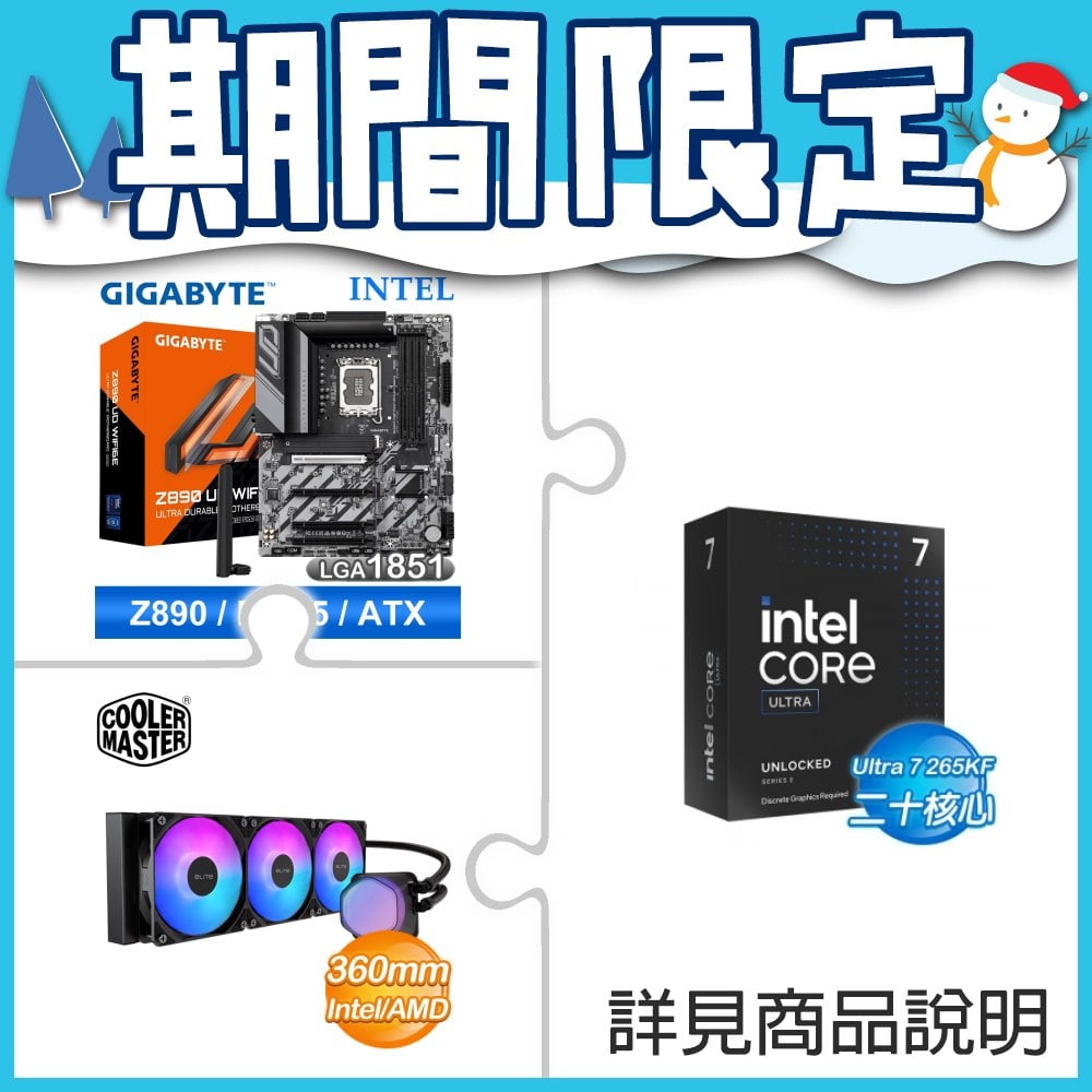 ☆超頻新戰力★ Core U7 265KF+技嘉 Z890 UD WIFI6E 主機板 ★送酷碼 EliteLiquid 360 ARGB 水冷散熱器
