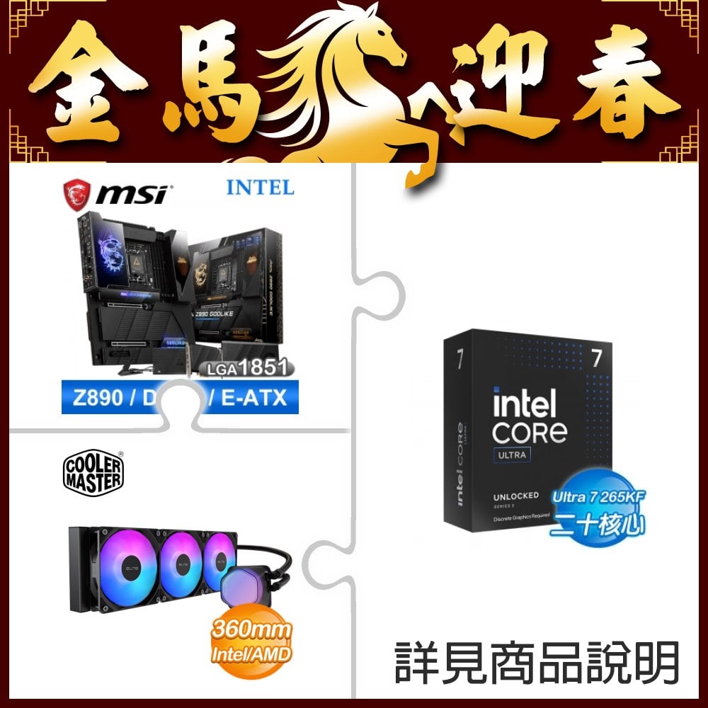 ☆超頻新戰力★ Core U7 265KF+微星 MEG Z890 GODLIKE 主機板 ★送酷碼 EliteLiquid 360 ARGB 水冷散熱器