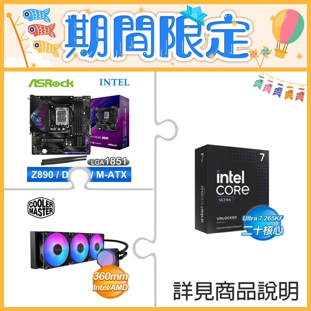 ☆超頻新戰力★ Core U7 265KF+華擎 Z890M Riptide WiFi 主機板 ★送酷碼 EliteLiquid 360 ARGB 水冷散熱器