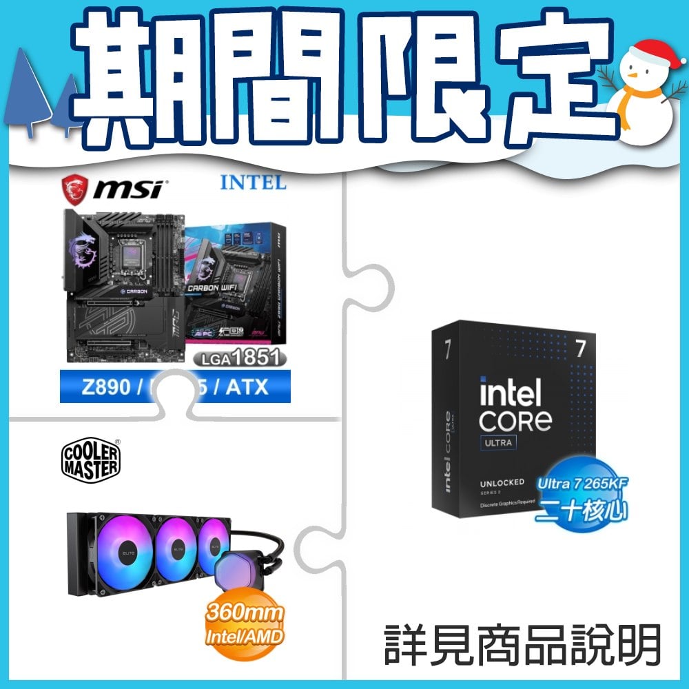 ☆超頻新戰力★ Core U7 265KF+微星 MPG Z890 CARBON WIFI 主機板 ★送酷碼 EliteLiquid 360 ARGB 水冷散熱器