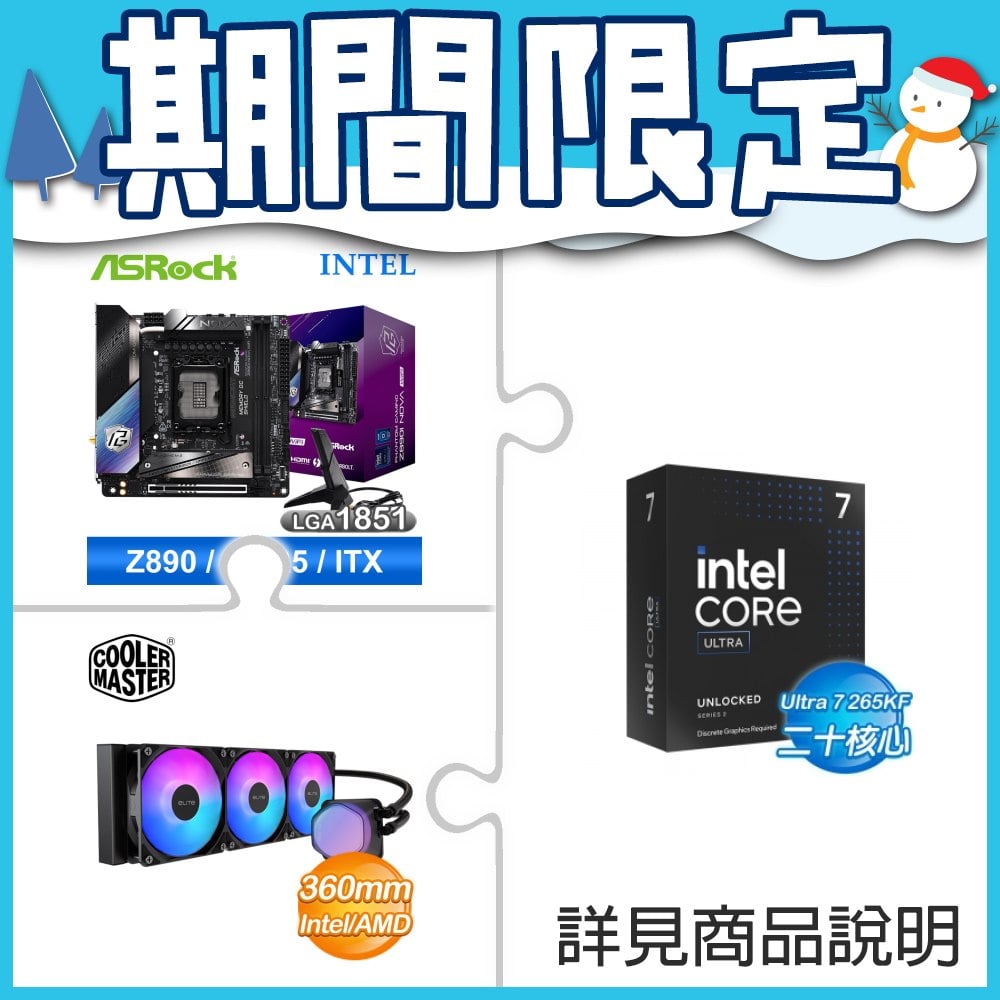 ☆超頻新戰力★ Core U7 265KF+華擎 Z890I Nova WiFi 主機板 ★送酷碼 EliteLiquid 360 ARGB 水冷散熱器
