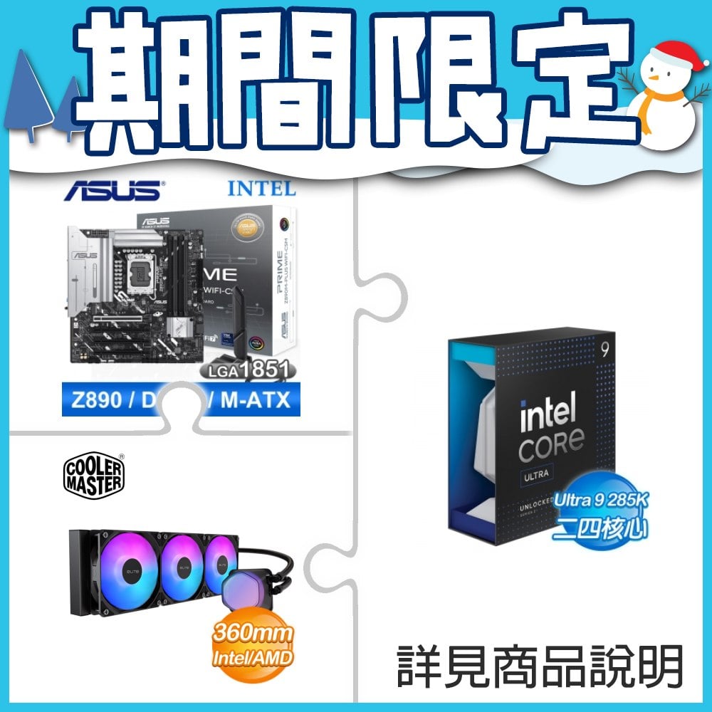 ☆超頻新戰力★ Core U9 285K+華碩 PRIME Z890M-PLUS WIFI-CSM 主機板 ★送酷碼 EliteLiquid 360 ARGB 水冷散熱器