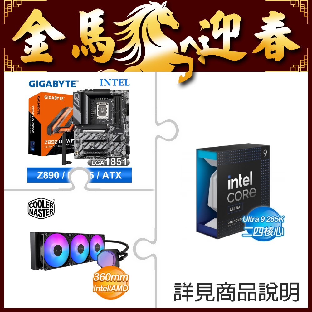 ☆超頻新戰力★ Core U9 285K+技嘉 Z890 UD WIFI6E 主機板 ★送酷碼 EliteLiquid 360 ARGB 水冷散熱器