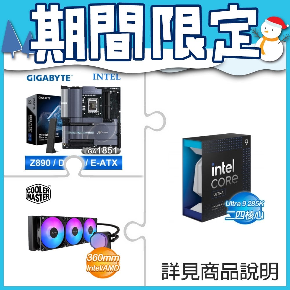 ☆超頻新戰力★ Core U9 285K+技嘉 Z890 AI TOP 主機板 ★送酷碼 EliteLiquid 360 ARGB 水冷散熱器