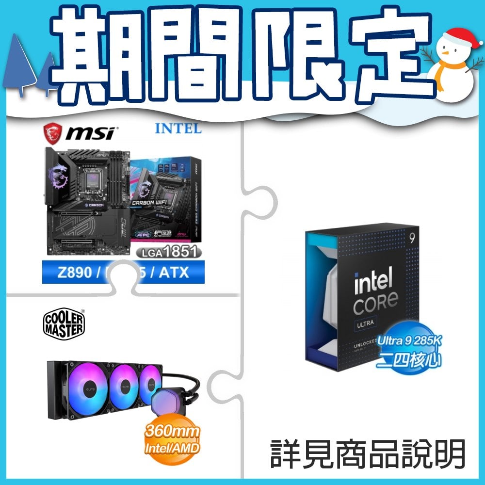 ☆超頻新戰力★ Core U9 285K+微星 MPG Z890 CARBON WIFI 主機板 ★送酷碼 EliteLiquid 360 ARGB 水冷散熱器