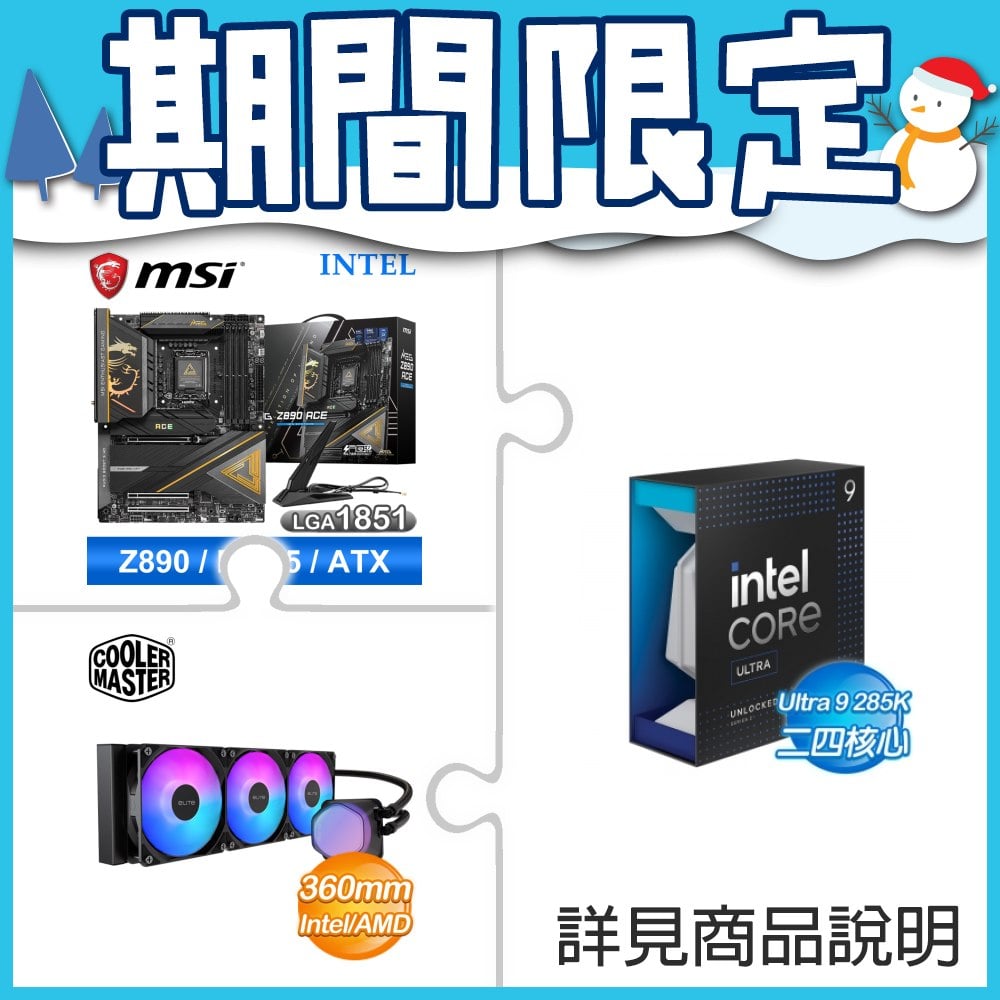 ☆超頻新戰力★ Core U9 285K+微星 MEG Z890 ACE 主機板 ★送酷碼 EliteLiquid 360 ARGB 水冷散熱器