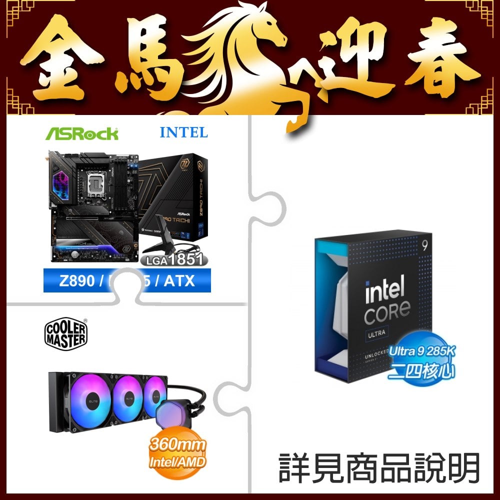 ☆超頻新戰力★ Core U9 285K+華擎 Z890 Taichi 主機板 ★送酷碼 EliteLiquid 360 ARGB 水冷散熱器
