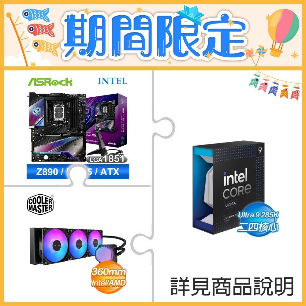 ☆超頻新戰力★ Core U9 285K+華擎 Z890 Nova WiFi 主機板 ★送酷碼 EliteLiquid 360 ARGB 水冷散熱器
