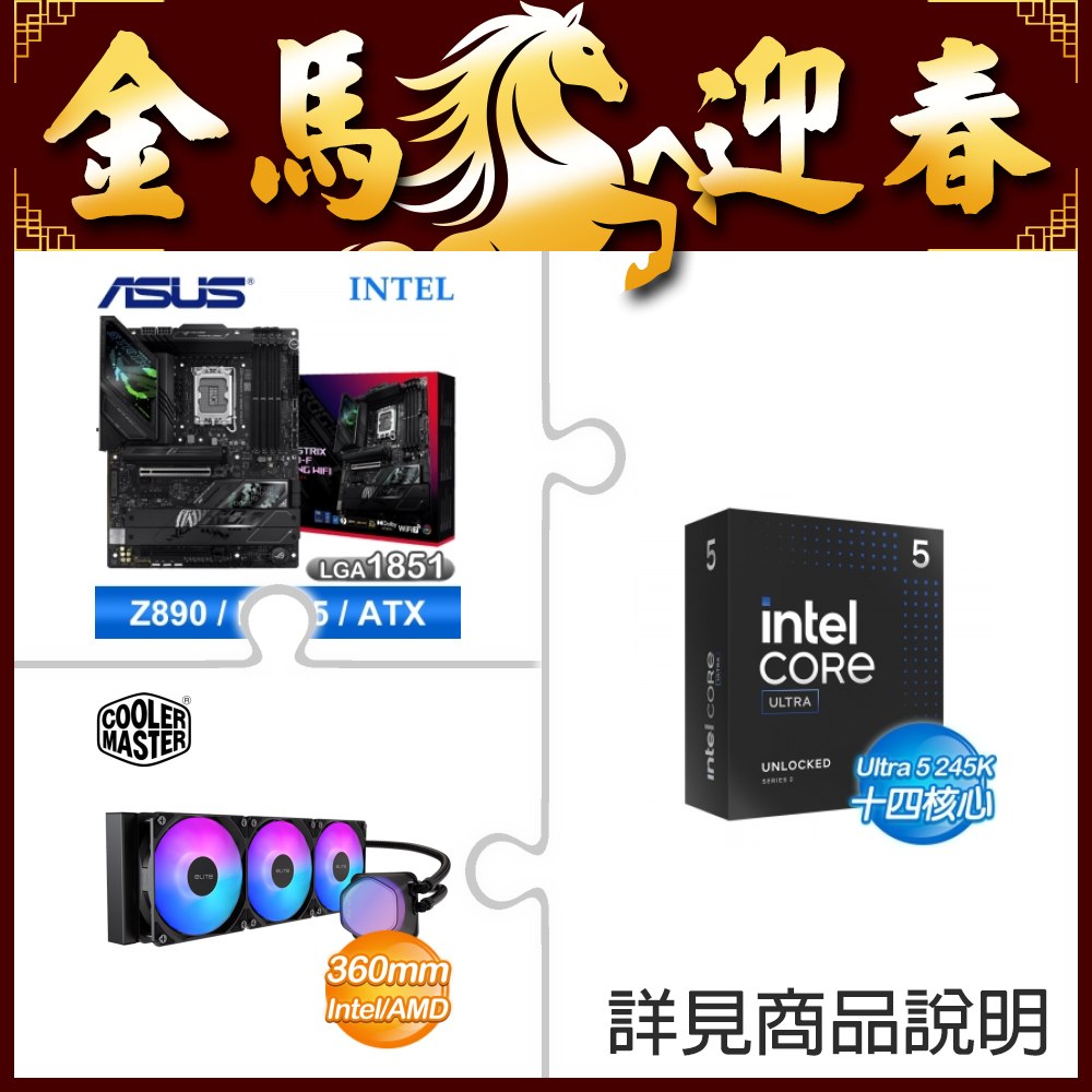 ☆超頻新戰力★ Core U5 245K+華碩 ROG STRIX Z890-F GAMING WIFI 主機板 ★送酷碼 EliteLiquid 360 ARGB 水冷散熱器
