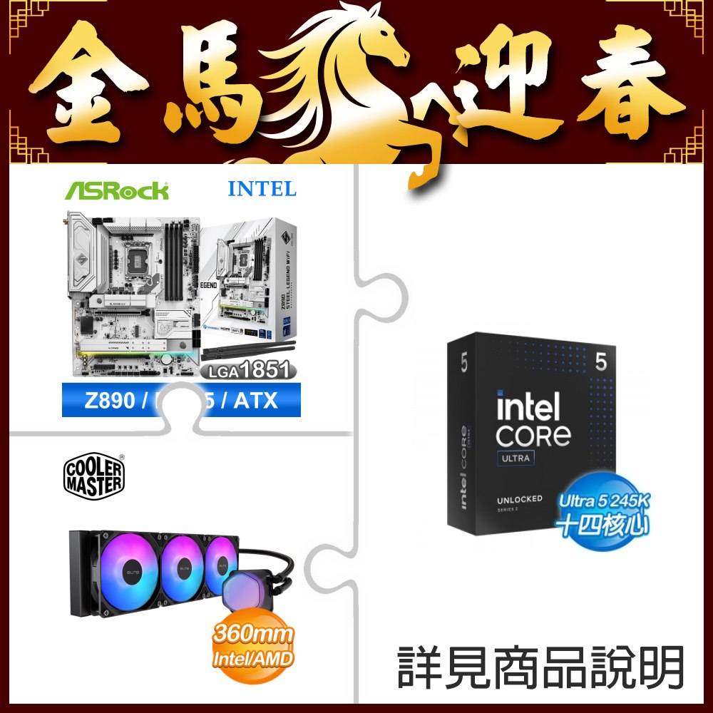 ☆超頻新戰力★ Core U5 245K+華擎 Z890 Steel Legend WiFi 主機板 ★送酷碼 EliteLiquid 360 ARGB 水冷散熱器
