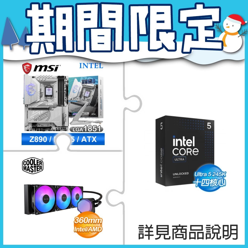 ☆超頻新戰力★ Core U5 245K+微星 MPG Z890 EDGE TI WIFI 主機板 ★送酷碼 EliteLiquid 360 ARGB 水冷散熱器