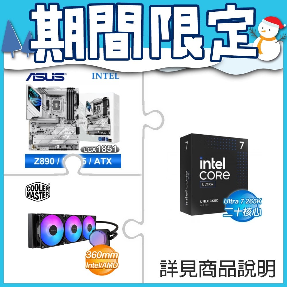 ☆超頻新戰力★ Core U7 265K+華碩 ROG STRIX Z890-A GAMING WIFI 主機板 ★送酷碼 EliteLiquid 360 ARGB 水冷散熱器