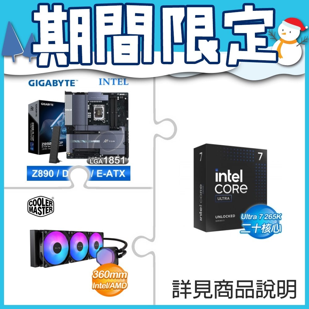 ☆超頻新戰力★ Core U7 265K+技嘉 Z890 AI TOP 主機板 ★送酷碼 EliteLiquid 360 ARGB 水冷散熱器