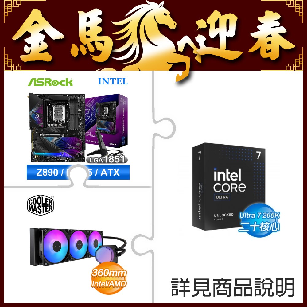 ☆超頻新戰力★ Core U7 265K+華擎 Z890 Riptide WiFi 主機板 ★送酷碼 EliteLiquid 360 ARGB 水冷散熱器