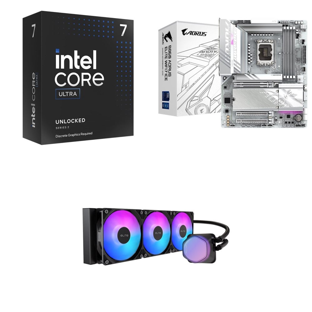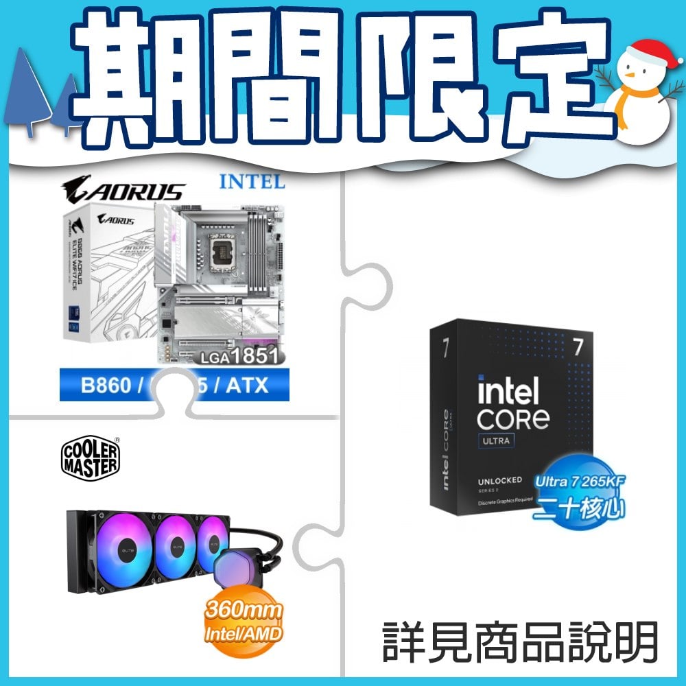 ☆超頻新戰力★ Core U7 265KF+技嘉 B860 AORUS ELITE WIFI7 ICE 主機板 +酷碼 EliteLiquid 360 ARGB 水冷散熱器