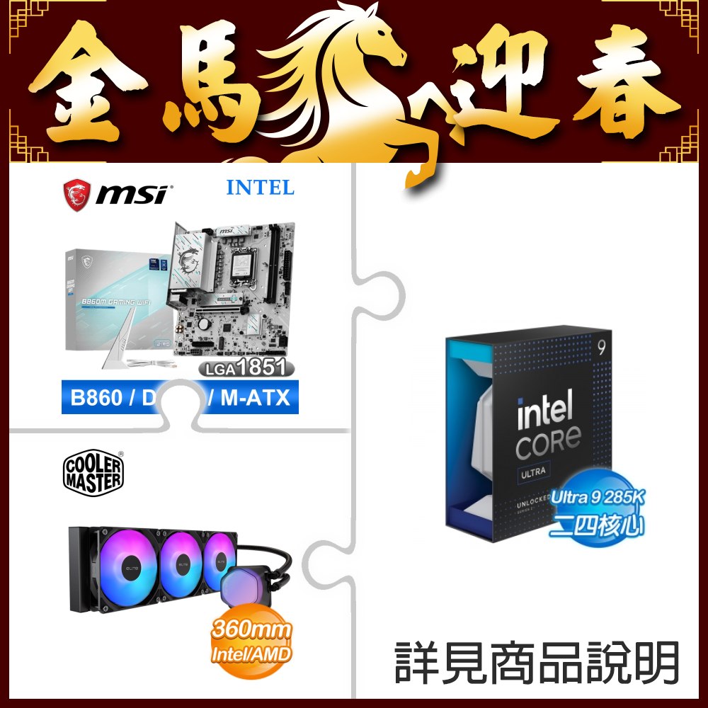 ☆超頻新戰力★ Core U9 285K+微星 B860M GAMING WIFI 主機板 +酷碼 EliteLiquid 360 ARGB 水冷散熱器