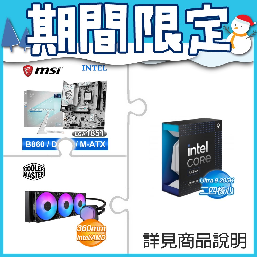 ☆超頻新戰力★ Core U9 285K+微星 B860M GAMING WIFI 主機板 +酷碼 EliteLiquid 360 ARGB 水冷散熱器