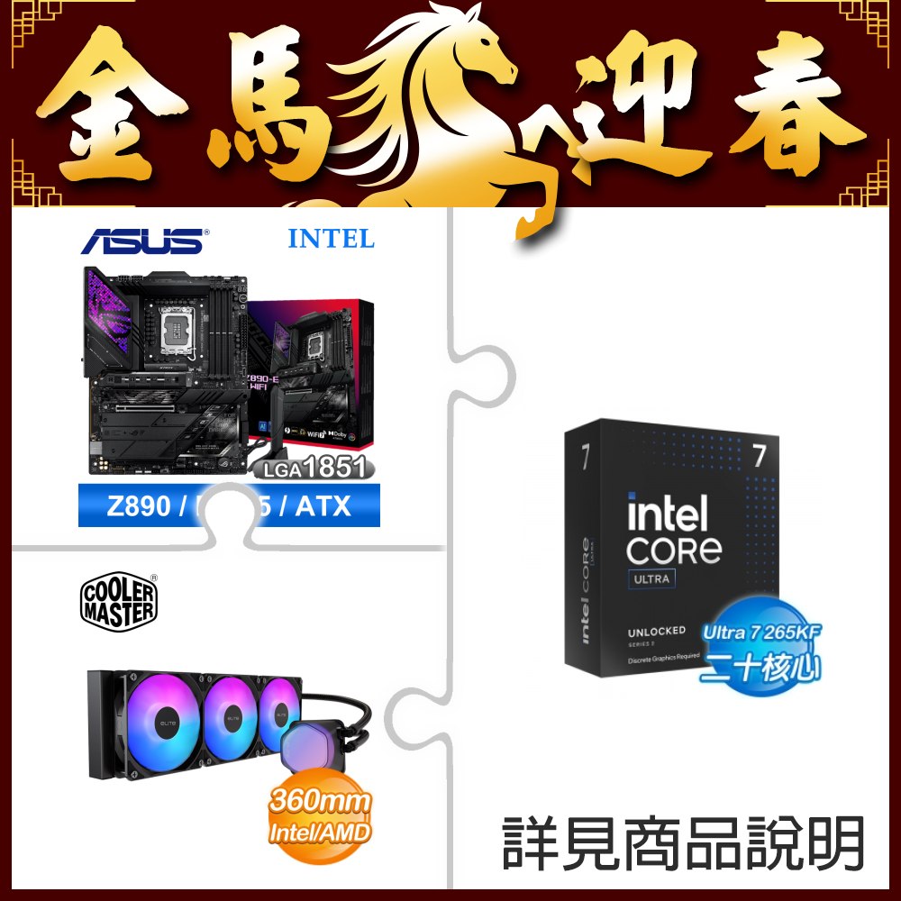 ☆超頻新戰力★ Core U7 265KF+華碩 ROG STRIX Z890-E GAMING WIFI 主機板 ★送酷碼 EliteLiquid 360 ARGB 水冷散熱器