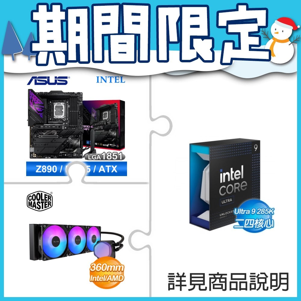 ☆超頻新戰力★ Core U9 285K+華碩 ROG STRIX Z890-E GAMING WIFI 主機板 ★送酷碼 EliteLiquid 360 ARGB 水冷散熱器