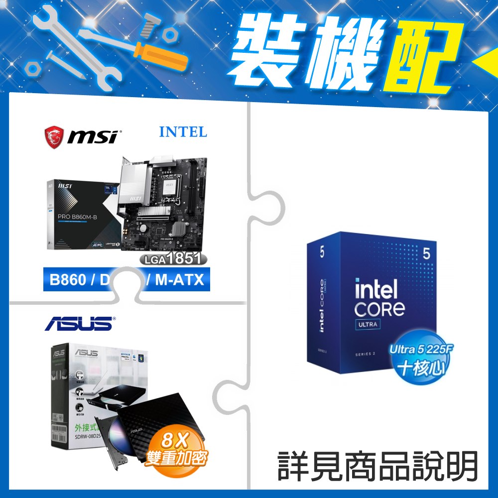☆裝機配★ Core U5 225F+微星 PRO B860M-B MATX主機板+華碩 SDRW-08D2S-U 外接式燒錄機《黑》