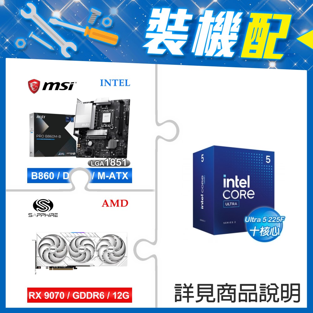 ☆裝機配★ Core U5 225F+微星 PRO B860M-B MATX主機板+藍寶石 PURE 極地 RX 9070 GRE GAMING OC 12GB 顯示卡