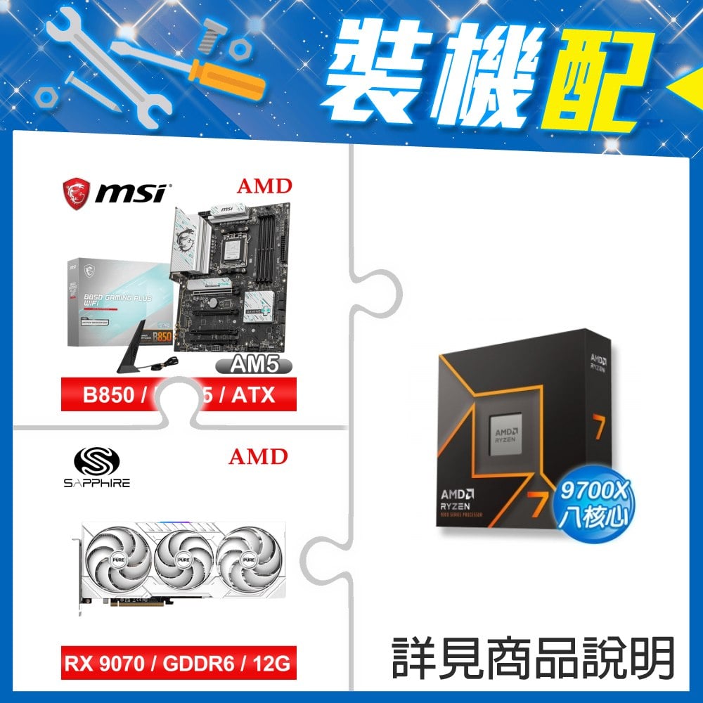 ☆裝機配★ Core U5 225+微星 PRO B860M-B MATX主機板+藍寶石 PURE 極地 RX 9070 GRE GAMING OC 12GB 顯示卡