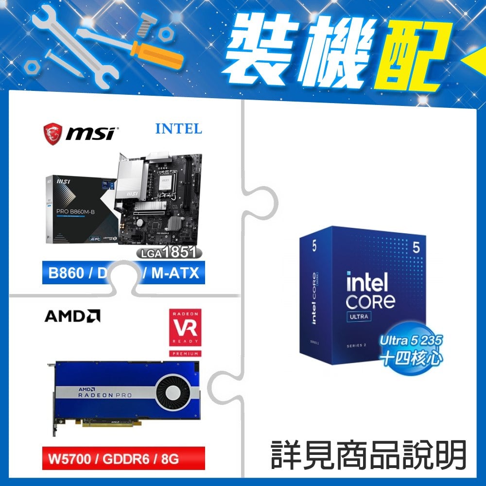 ☆裝機配★ Core U5 225F+微星 PRO B860M-B MATX主機板+AMD RadeonPro W5700 8G 256bit專業繪圖卡