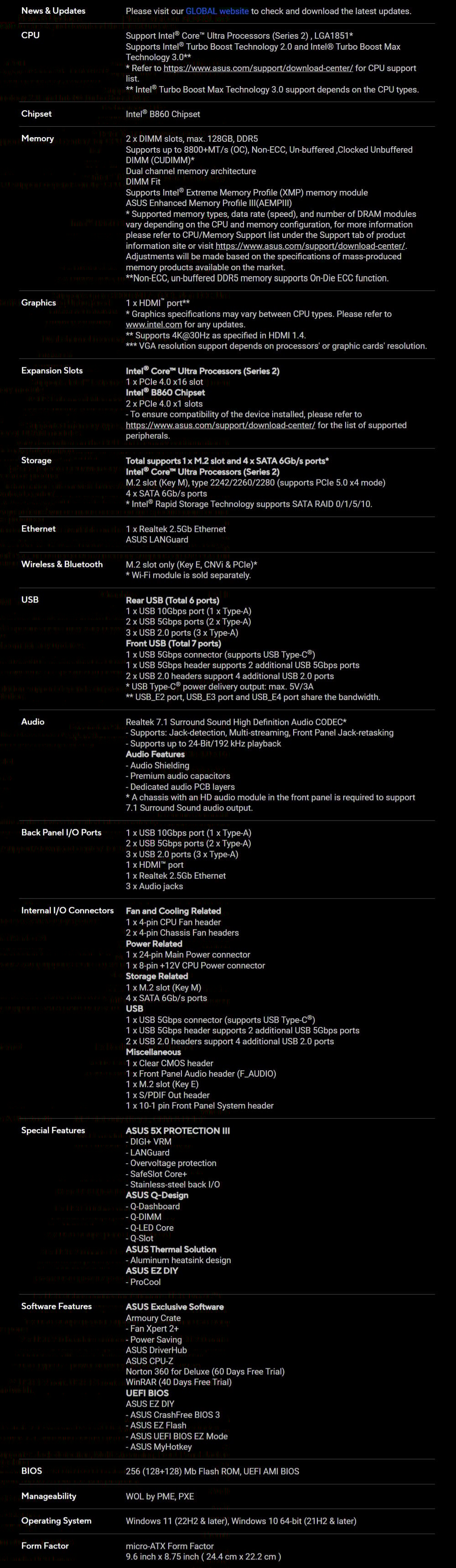 ASUS 華碩 B860M-E-CSM D5 LGA1851主機板(MATX/3+1年保)